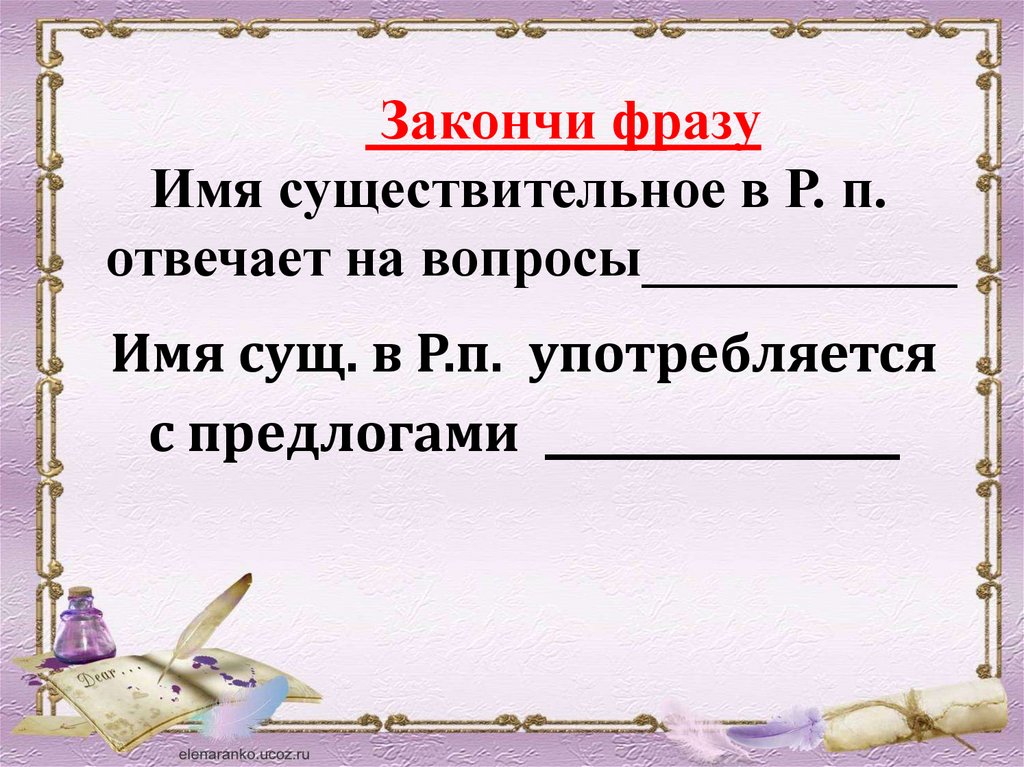 Закончи фразуИмя существительное в Р. п.