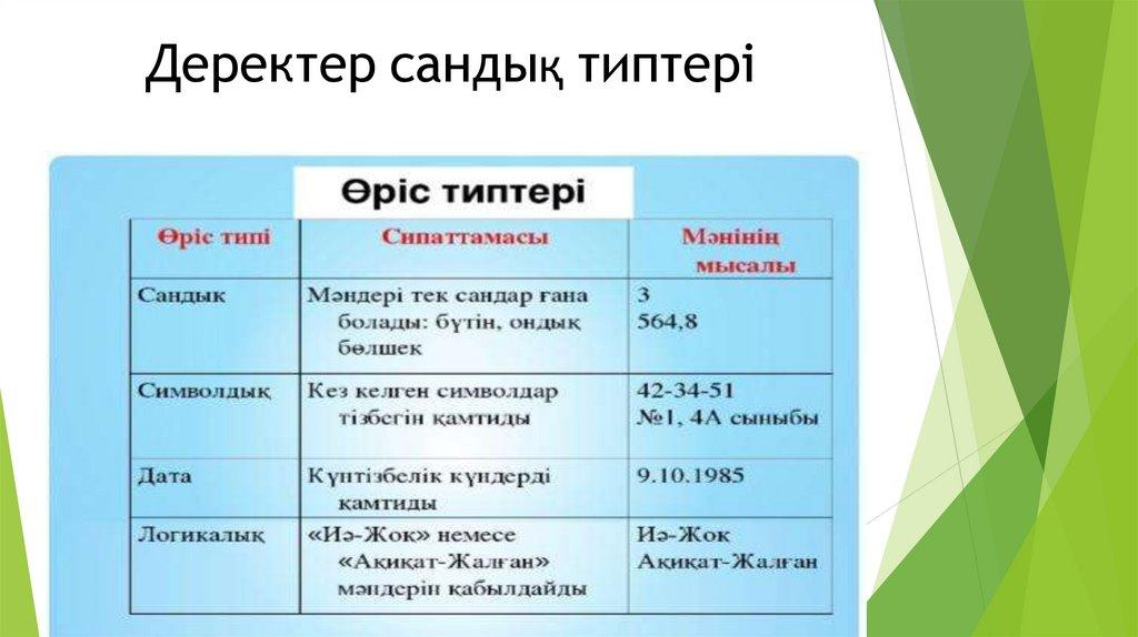Тақырыбы: «Деректер қорын дасақталатын деректер типтері».