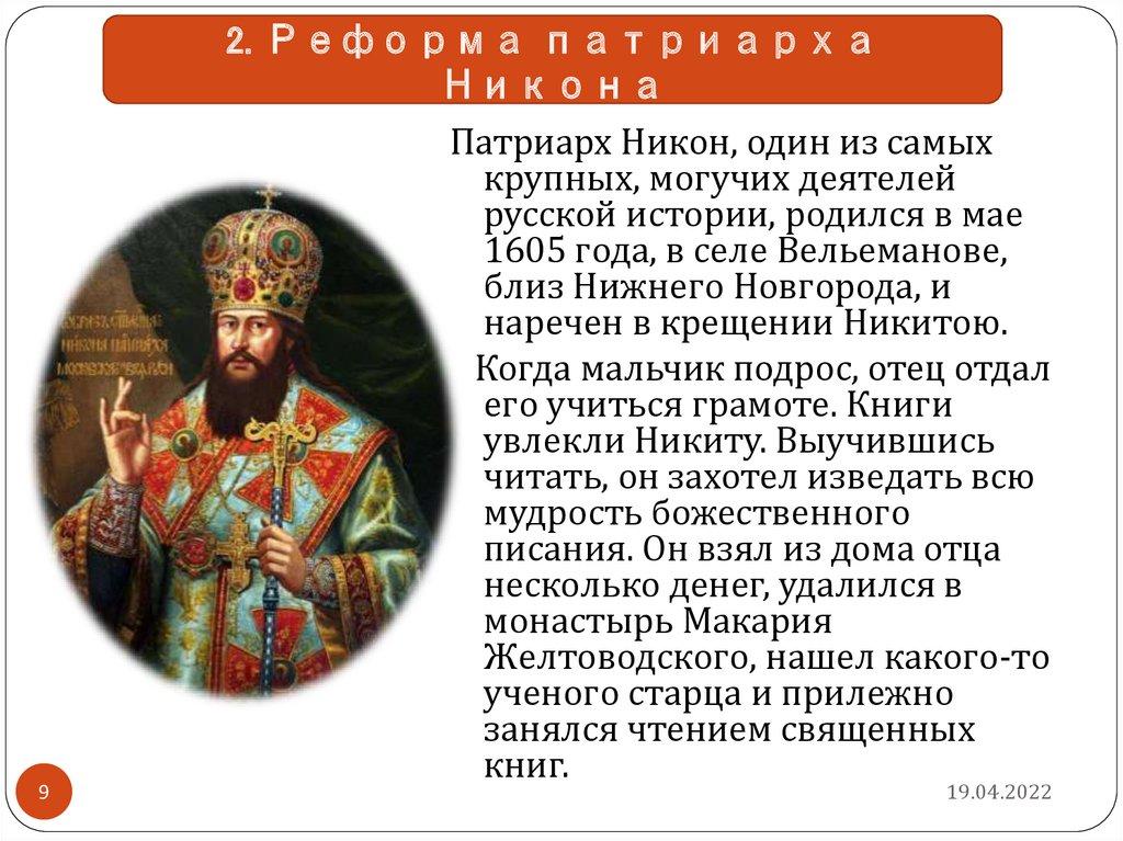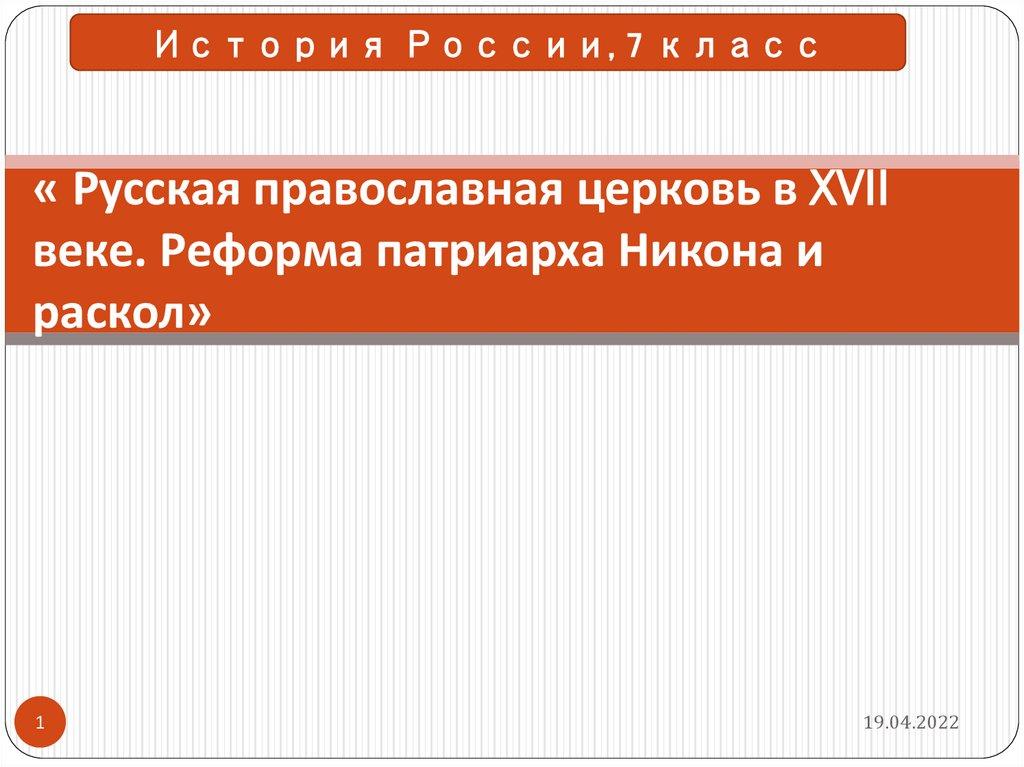 1. « Русская православная церковь в XVII веке. Реформа патриарха Никона и раскол»