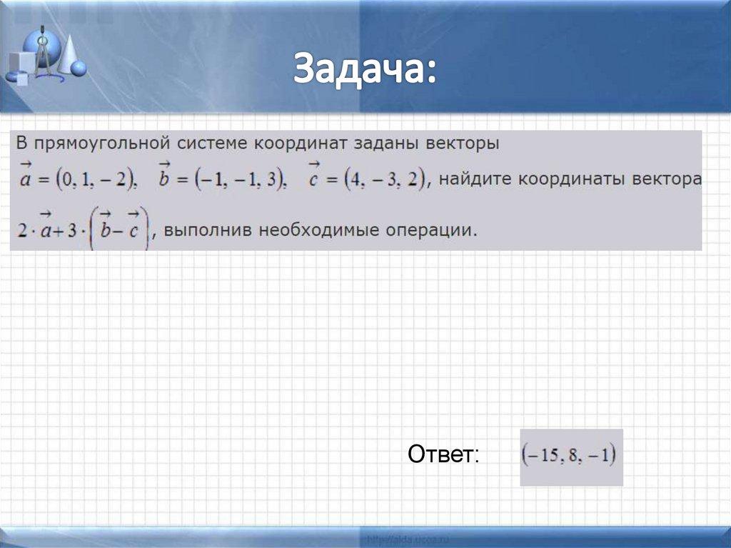 • Координаты вектора,