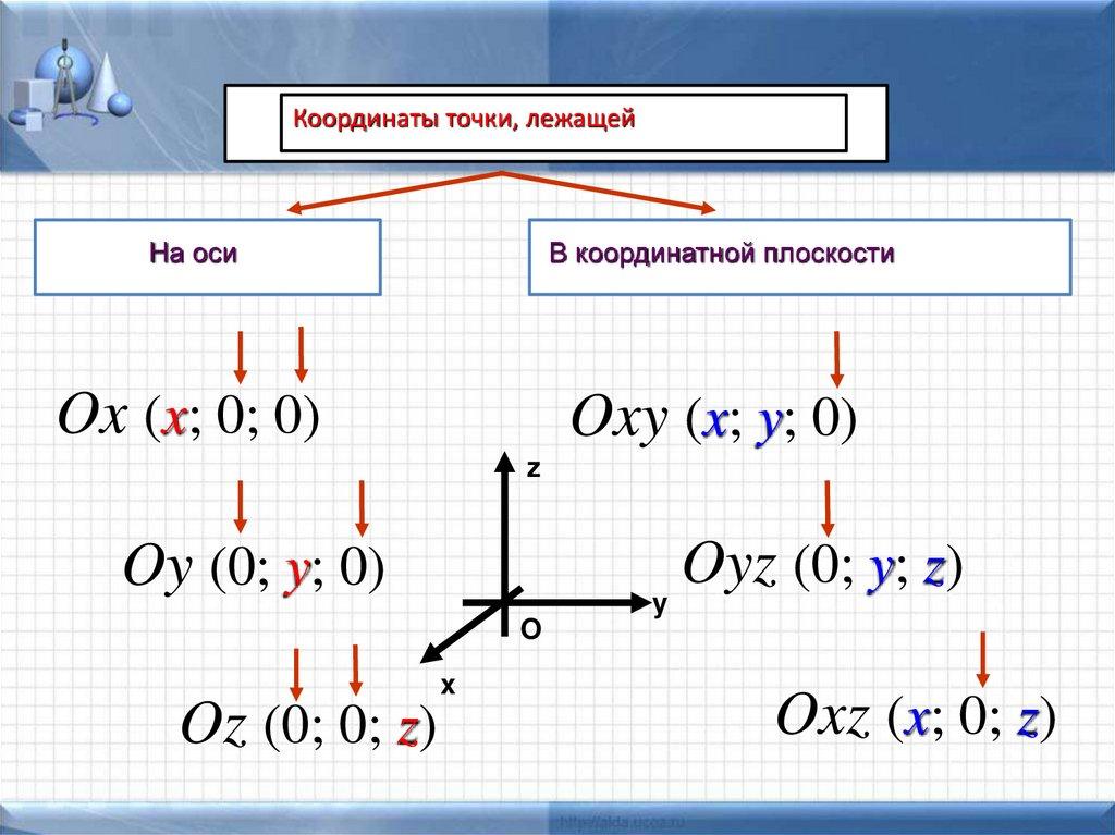 Координаты точки, лежащейНа оси