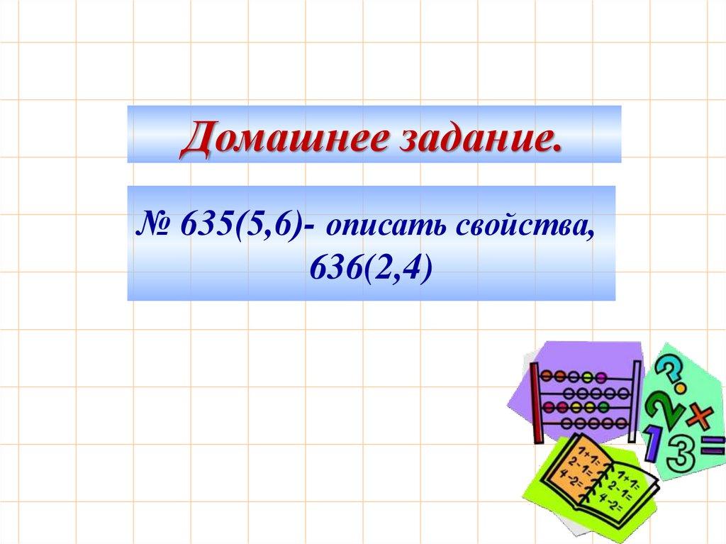 Домашнее задание.№ 635(5,6)- описать свойства,