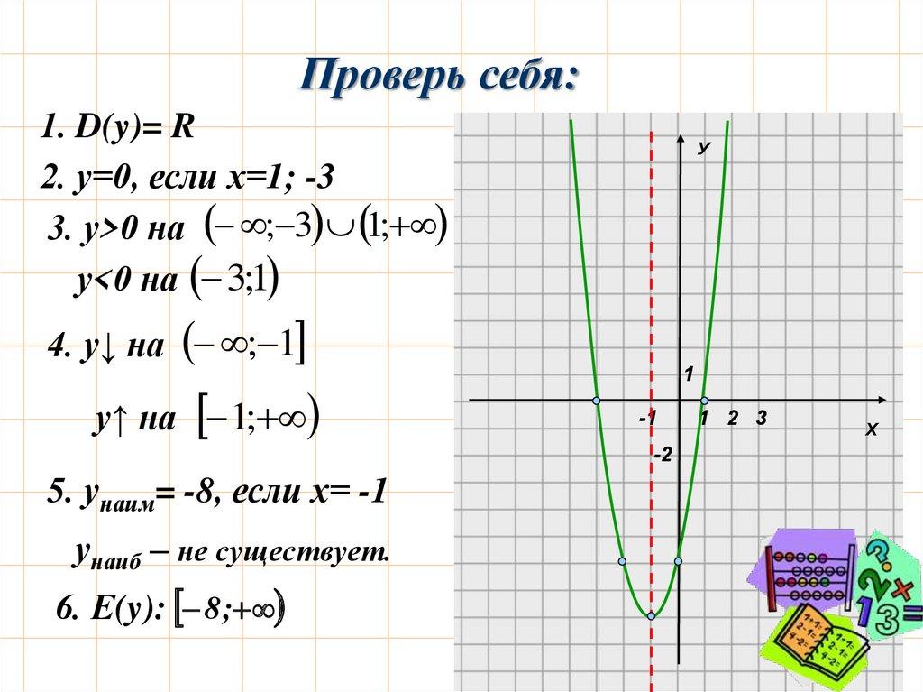 3. Графиком квадратичной функции является парабола, ветви которой направлены вверх(если а>0) или вниз (если а<0).