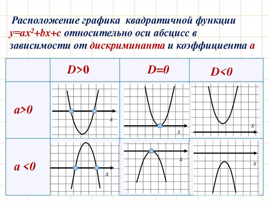 Расположение графика квадратичной функцииу=aх2+bx+c относительно оси абсцисс в