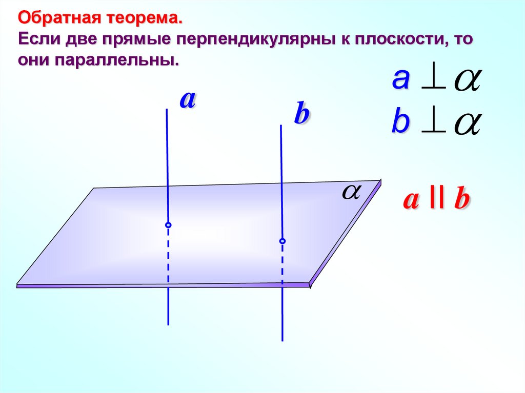 Обратная теорема.Если две прямые перпендикулярны к плоскости, то