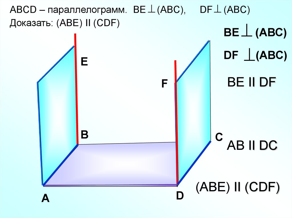 ABCD – параллелограмм. BE (ABC),Доказать: (АВЕ) II (СDF)