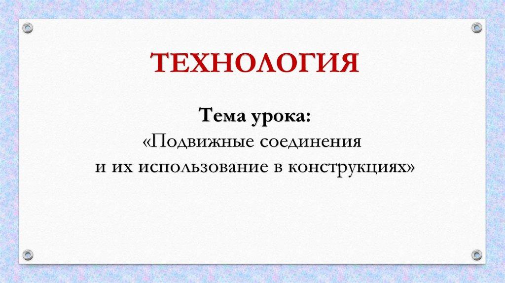 ТЕХНОЛОГИЯТема урока: