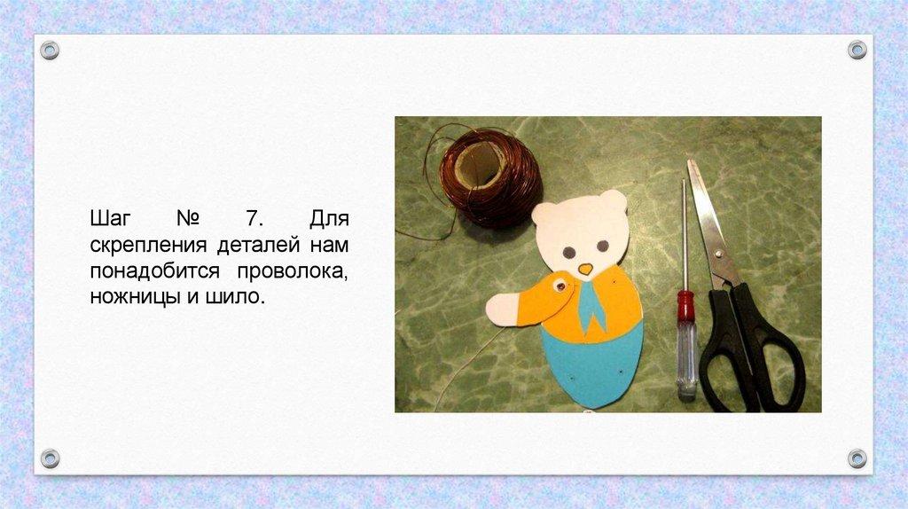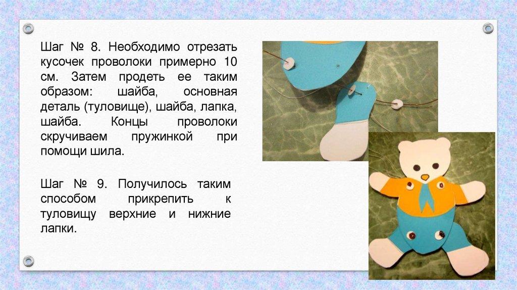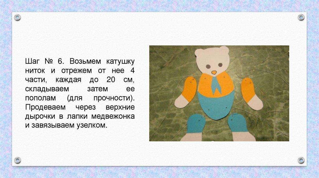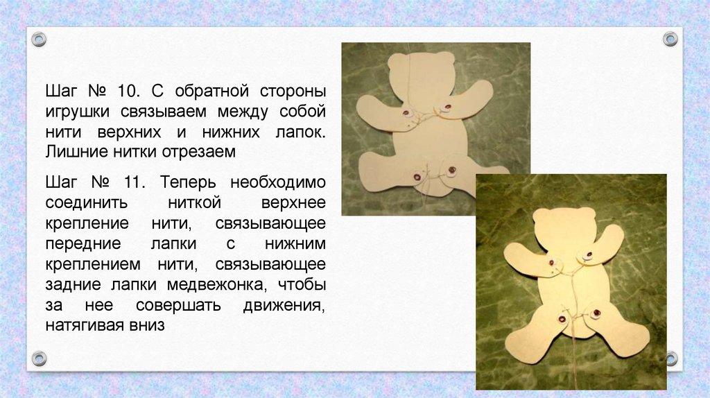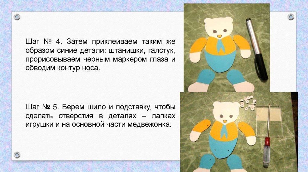 местах крепления деталей медвежонка;