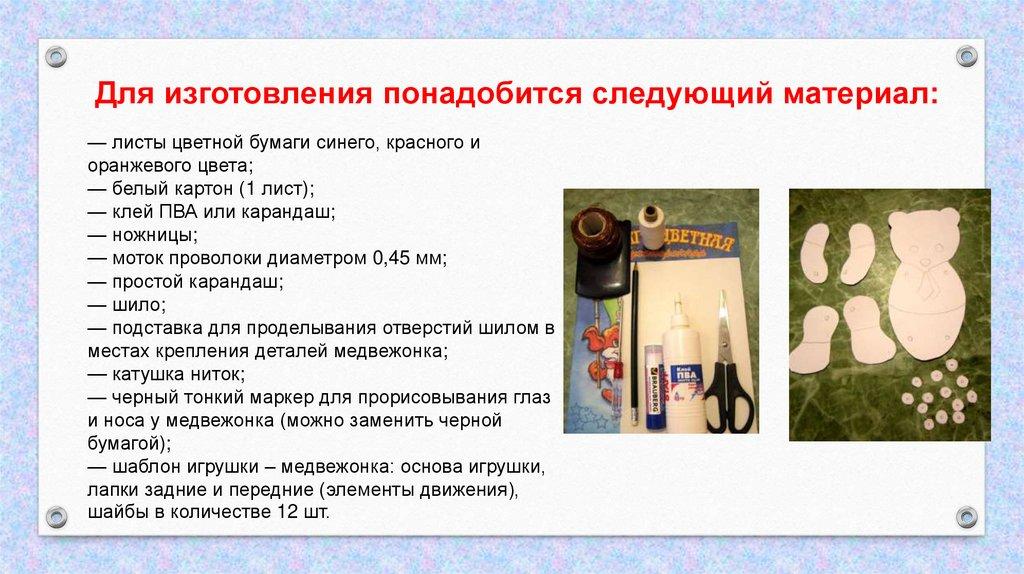 Для изготовления понадобится следующий материал:— листы цветной бумаги синего, красного и