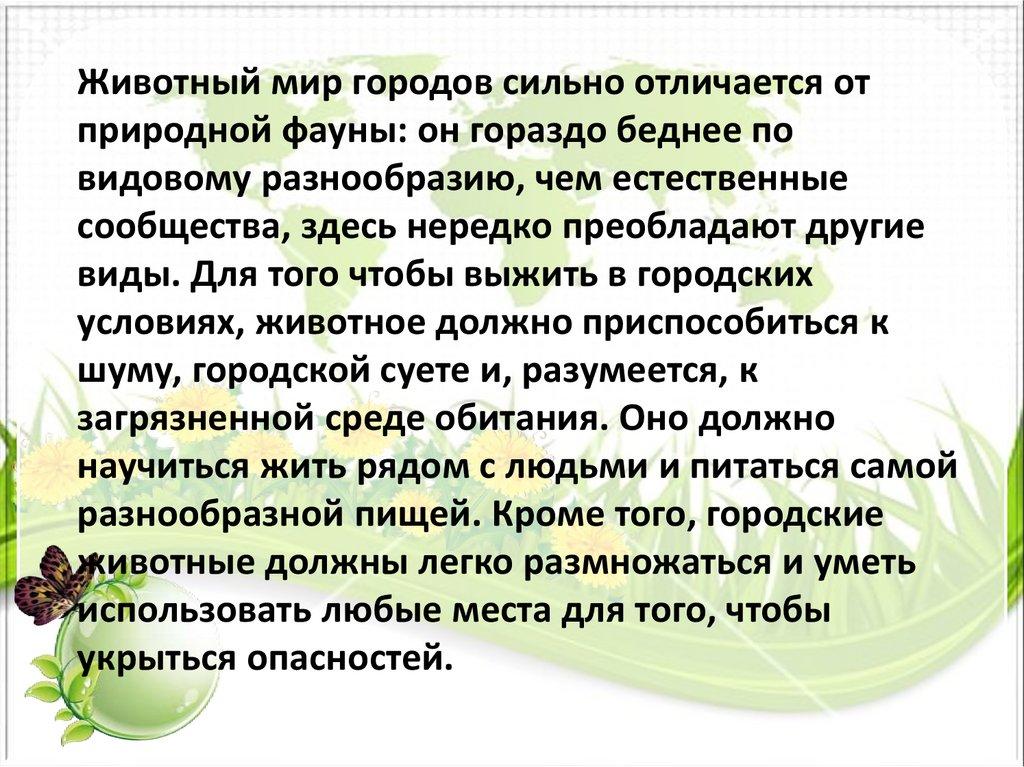 Животный мир городов сильно отличается отприродной фауны: он гораздо беднее по