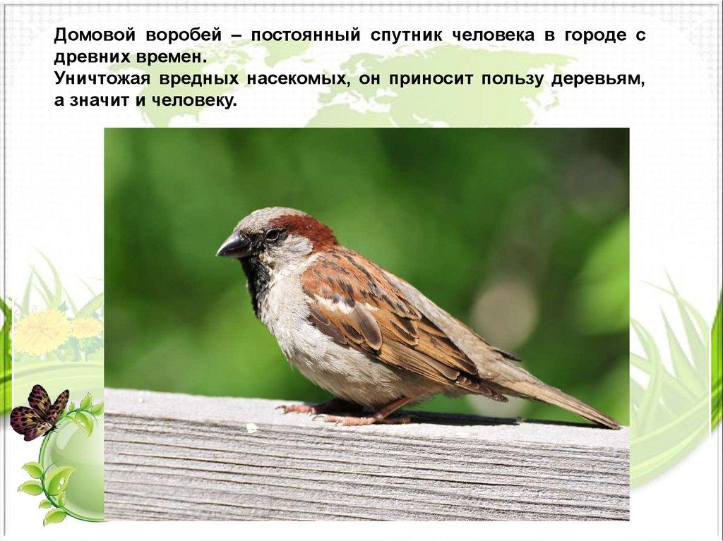 Домовой воробей – постоянный спутник человека в городе сдревних времен.