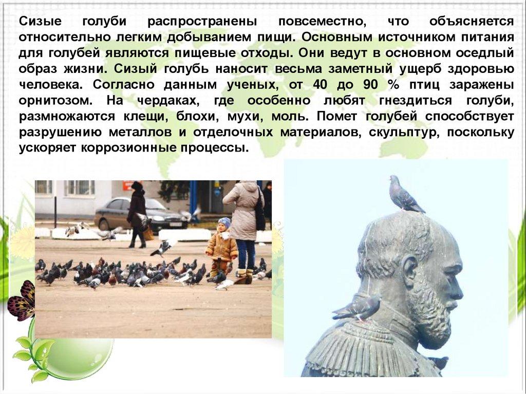 образ жизни. Сизый голубь наносит весьма заметный ущерб здоровью