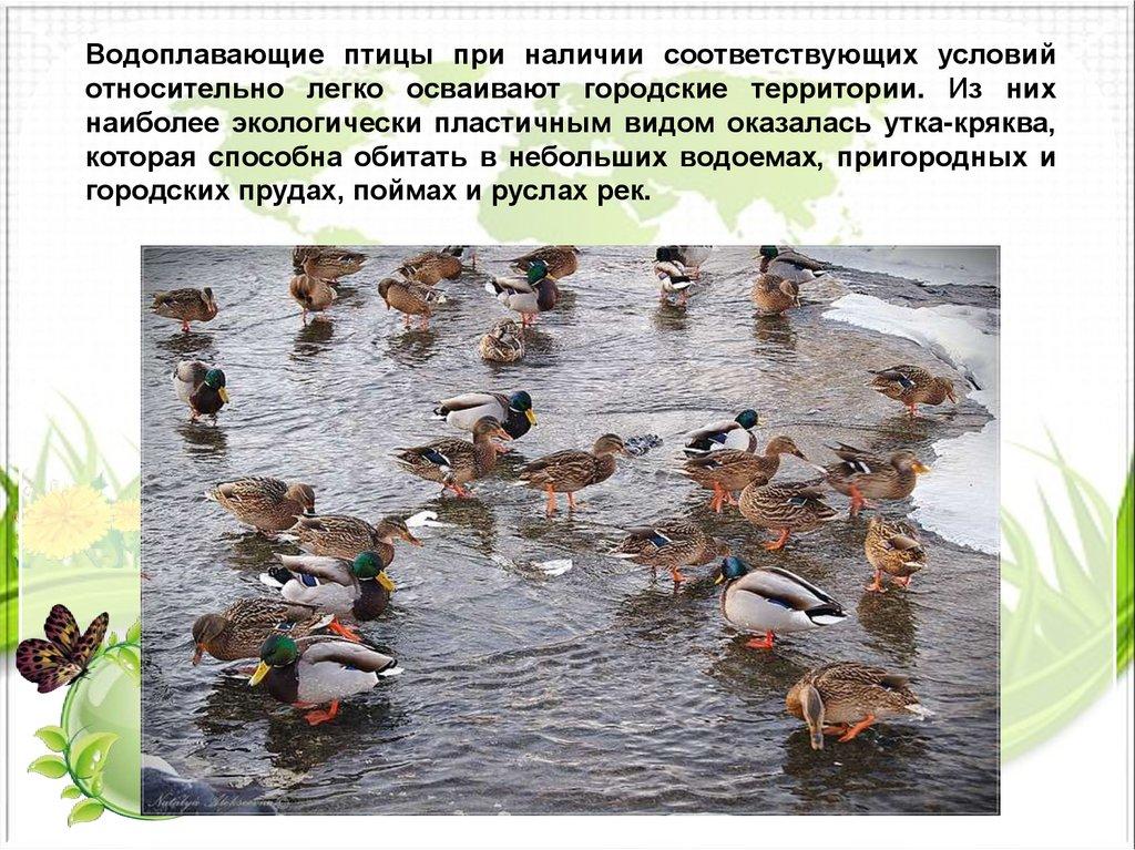 Водоплавающие птицы при наличии соответствующих условийотносительно легко осваивают городские территории. Из них