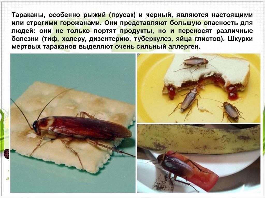 Тараканы, особенно рыжий (прусак) и черный, являются настоящимиили строгими горожанами. Они представляют большую опасность для