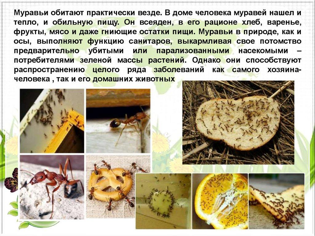 фрукты, мясо и даже гниющие остатки пищи. Муравьи в природе, как и