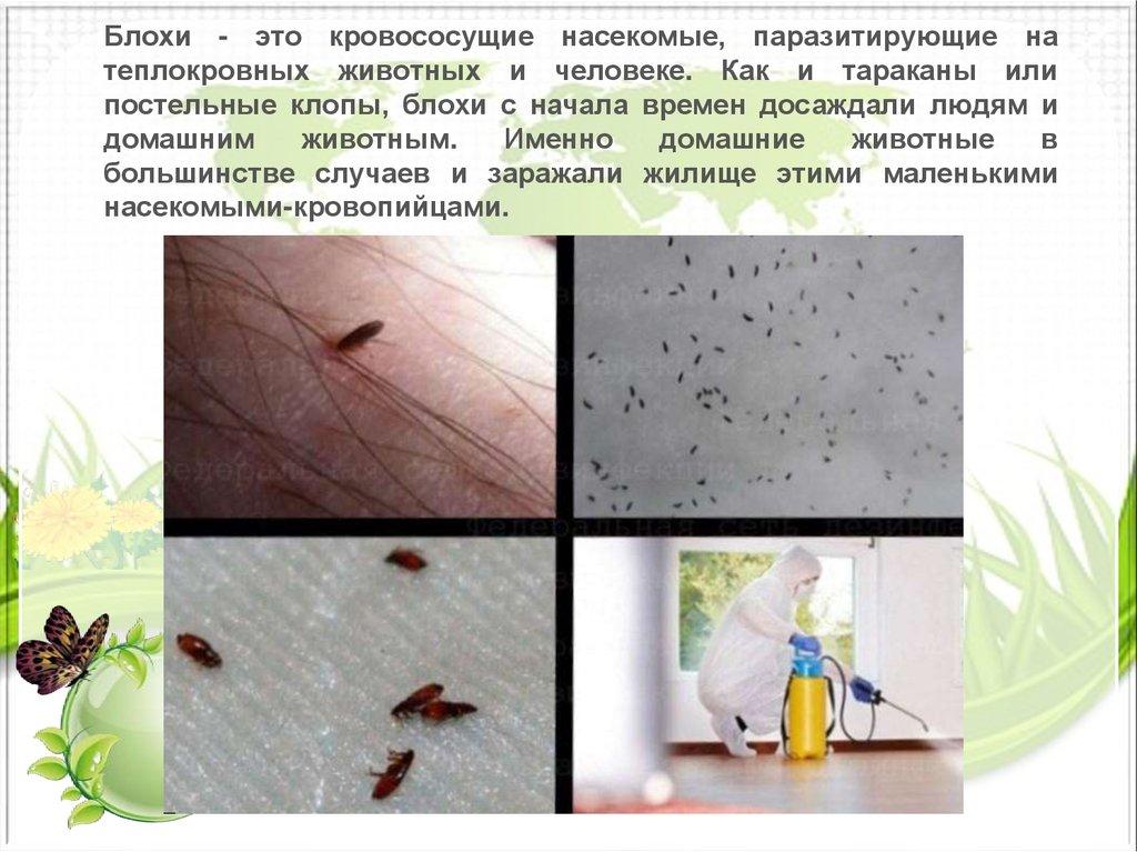 Блохи - это кровососущие насекомые, паразитирующие натеплокровных животных и человеке. Как и тараканы или