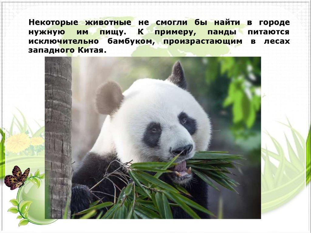 Некоторые животные не смогли бы найти в городенужную им пищу. К примеру, панды питаются