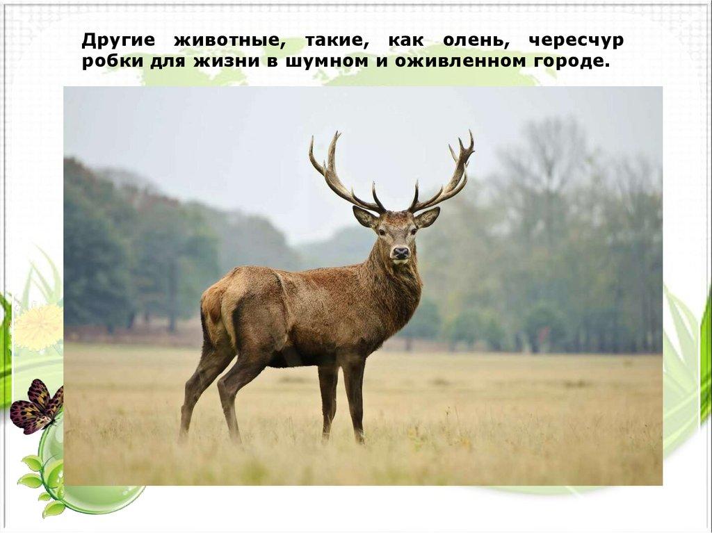 Другие животные, такие, как олень, чересчурробки для жизни в шумном и оживленном городе.