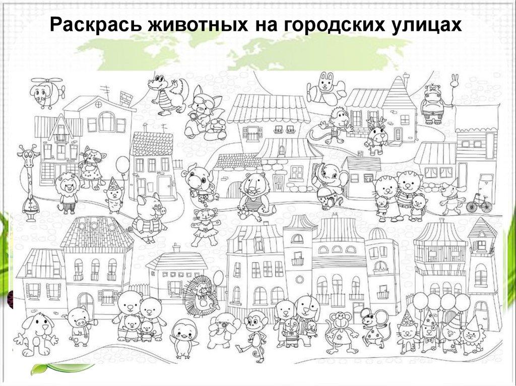 Раскрась животных на городских улицах34.