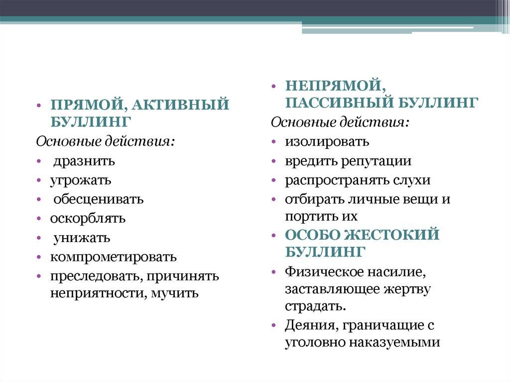 • ПРЯМОЙ, АКТИВНЫЙБУЛЛИНГ