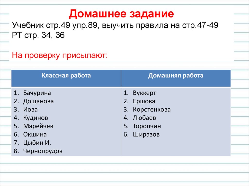 Домашнее заданиеУчебник стр.49 упр.89, выучить правила на стр.47-49