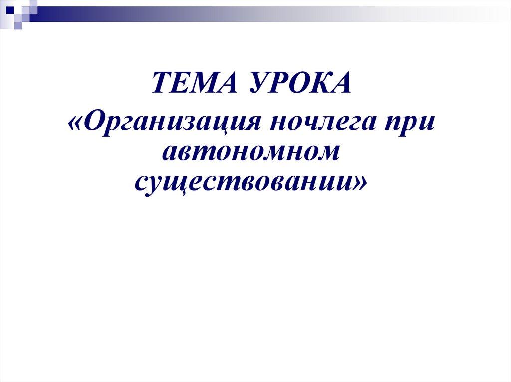 ТЕМА УРОКА«Организация ночлега при