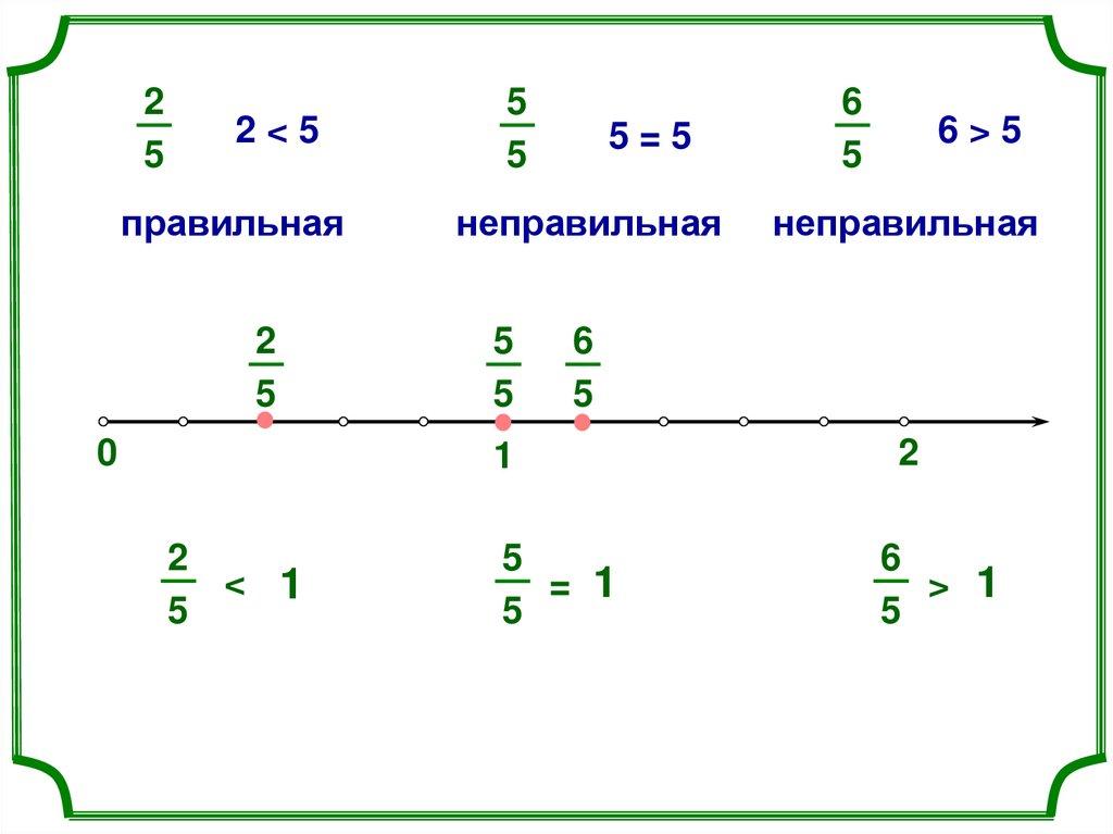 2. Правильная дробь всегда меньше единицы.