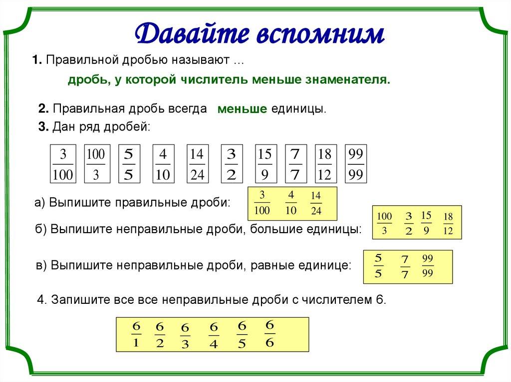 Правильные и неправильные дроби