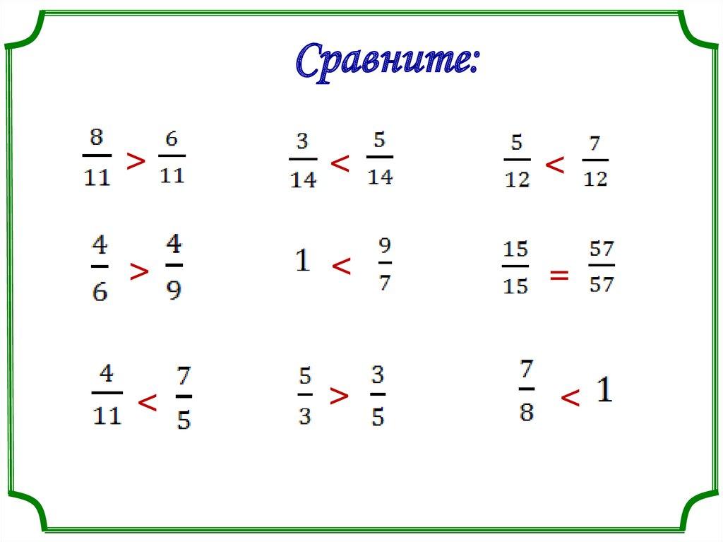 1) Если числитель больше знаменателя, то дробь а) правильная; б) неправильная; в) обыкновенная.2) Если числитель меньше знаменателя, то дробьа) правильная; б) неправильная; в) обыкновенная.