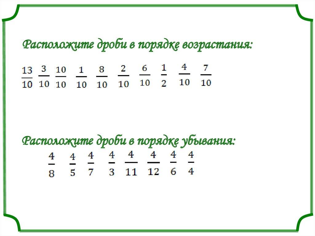 Расположите дроби в порядке возрастания:Расположите дроби в порядке убывания: