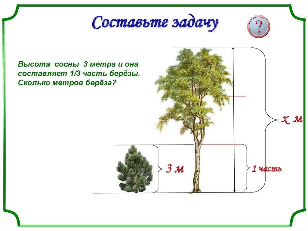 Составьте задачуВысота сосны 3 метра и она