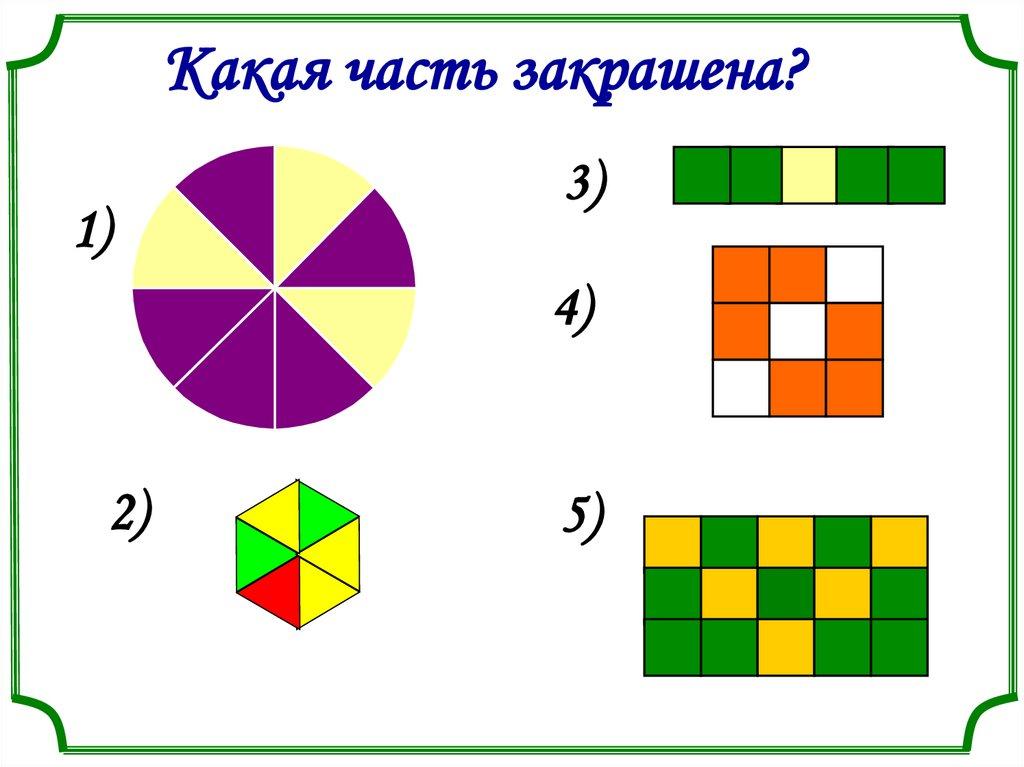 Какая часть закрашена?1)