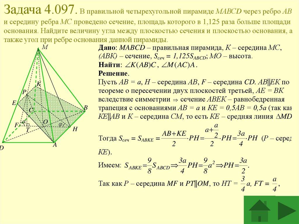 7. Задача 4.094. Сумма площадей всех боковых граней правильной пятиугольной пирамиды в шесть раз больше площади ее основания.