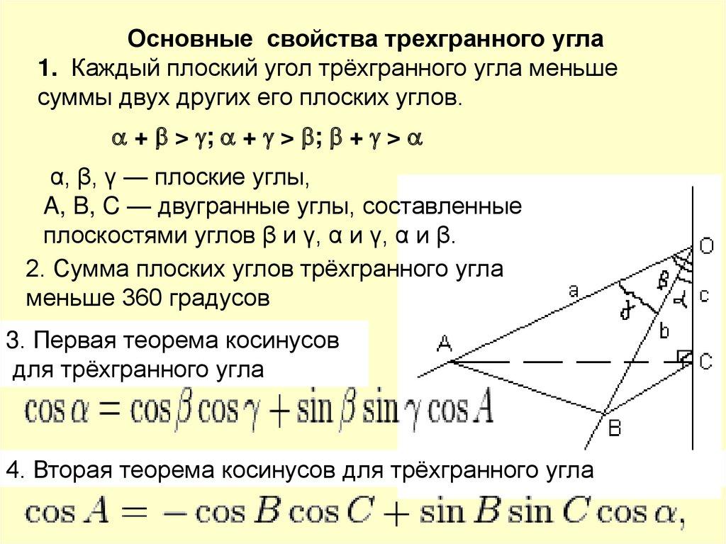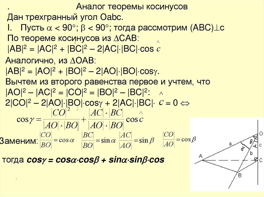 площади ортогональнойпроекции треугольника ABC на плоскость BDC к площади треугольника BDC.