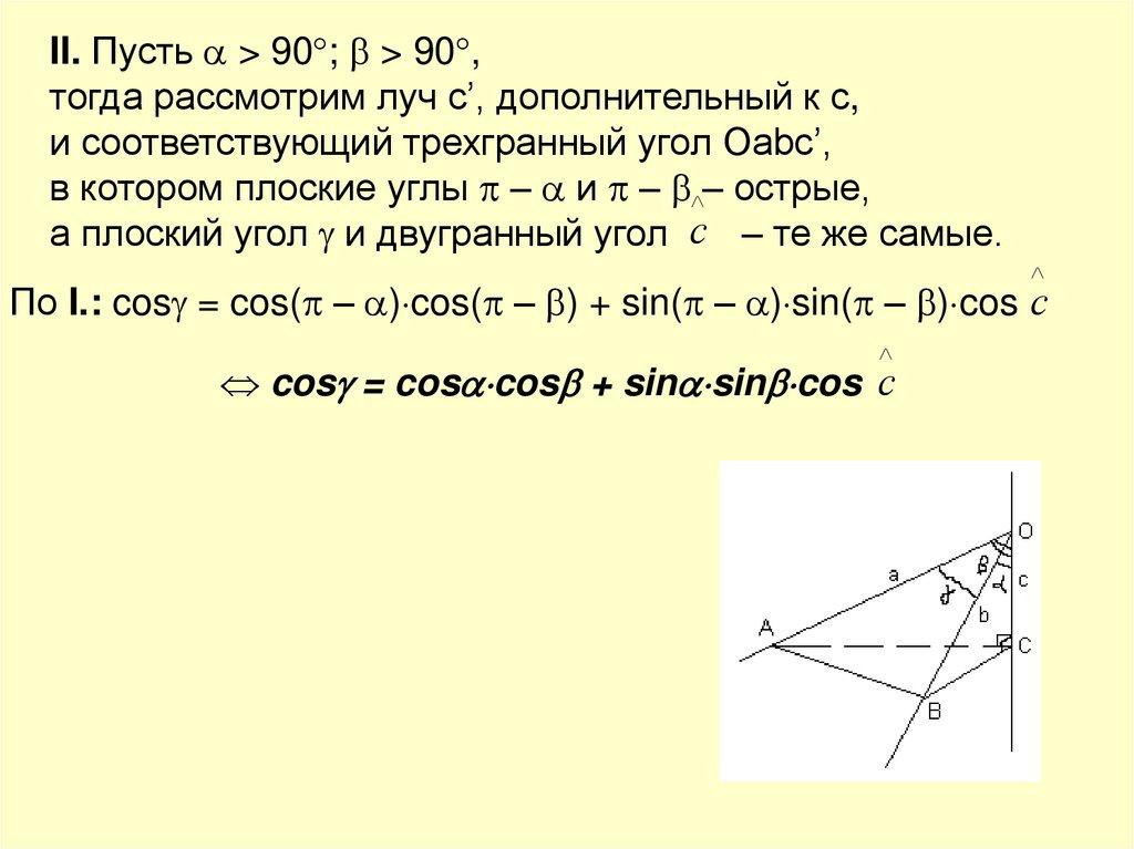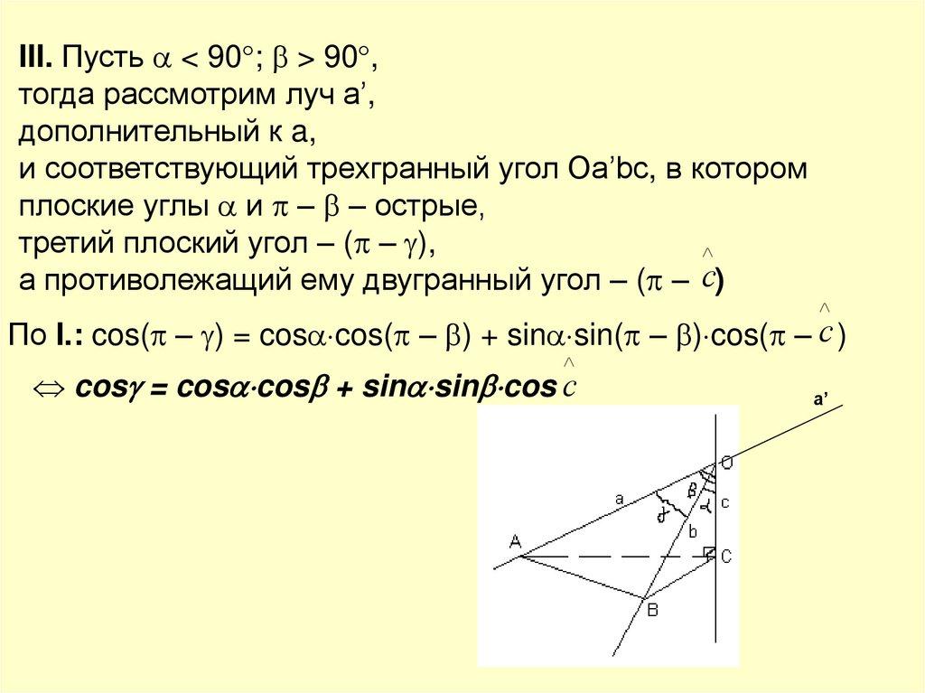 Sпр.ABC:SBDC = (SABC ·cos α)/ SABC = cos α.