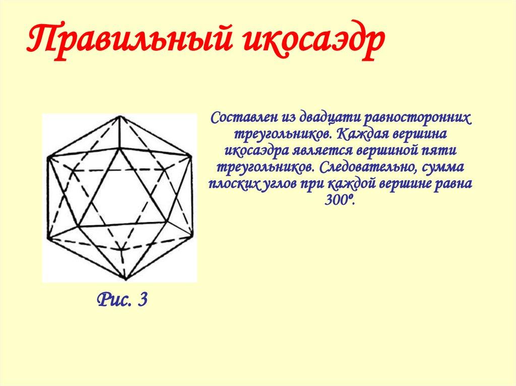 Правильный икосаэдрСоставлен из двадцати равносторонних