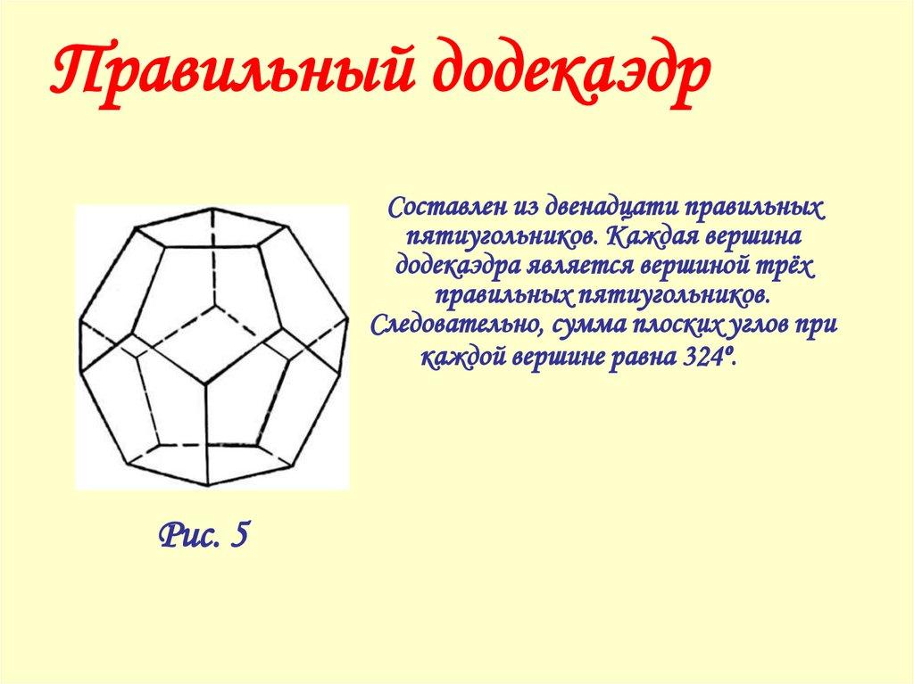 Правильный додекаэдрСоставлен из двенадцати правильных