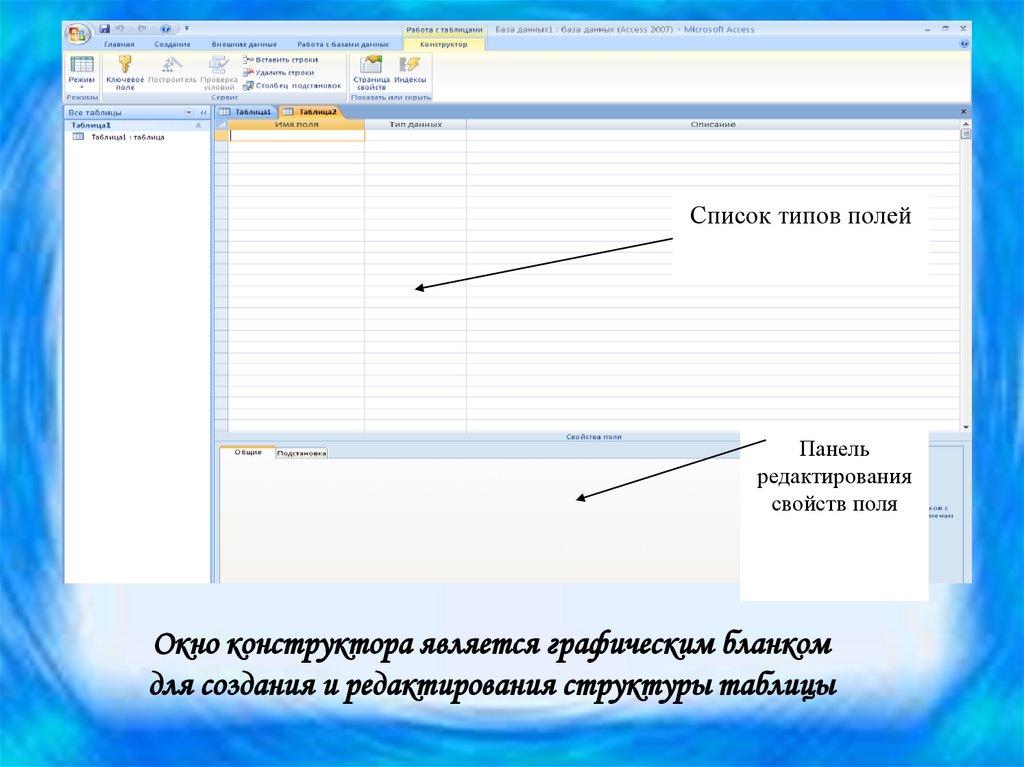5. Свойства полей. Типы полей