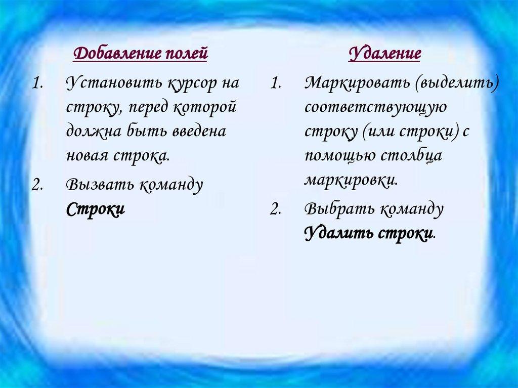 Сервис выбрать команду Добавить поля.