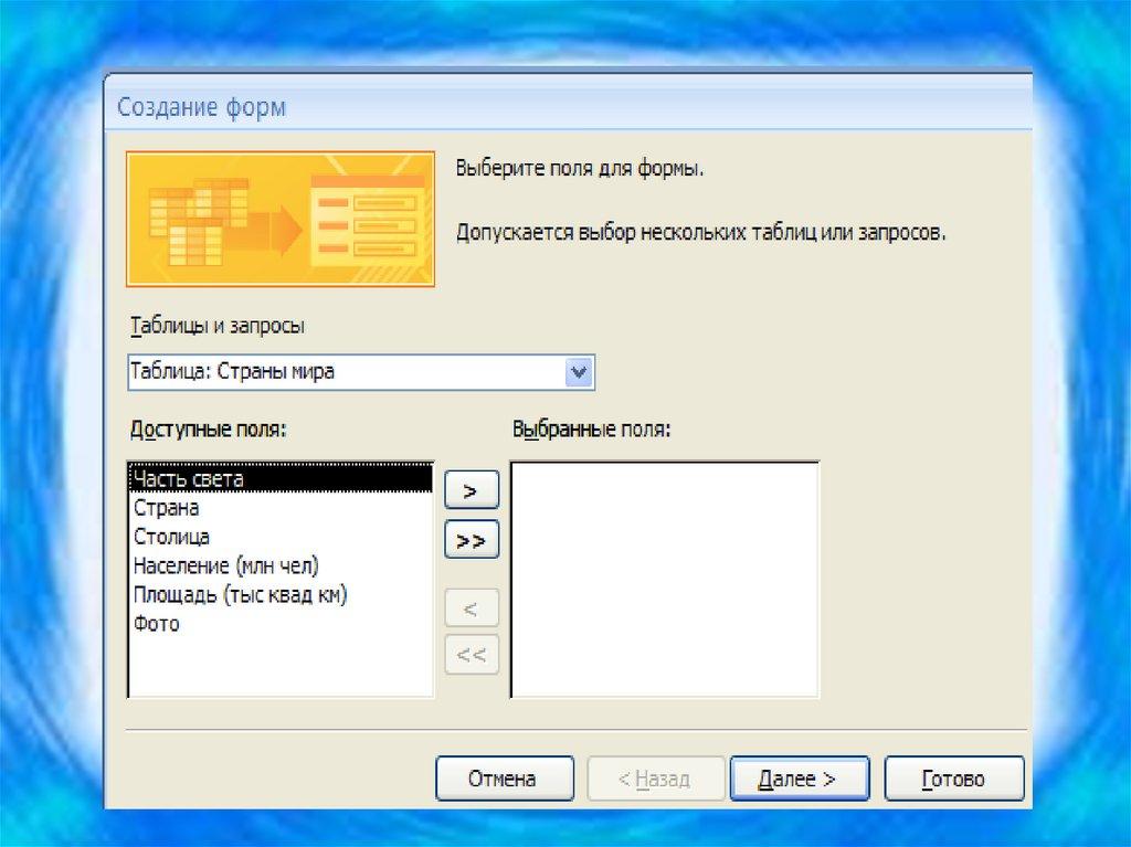 26. Создание форм с помощью Мастера