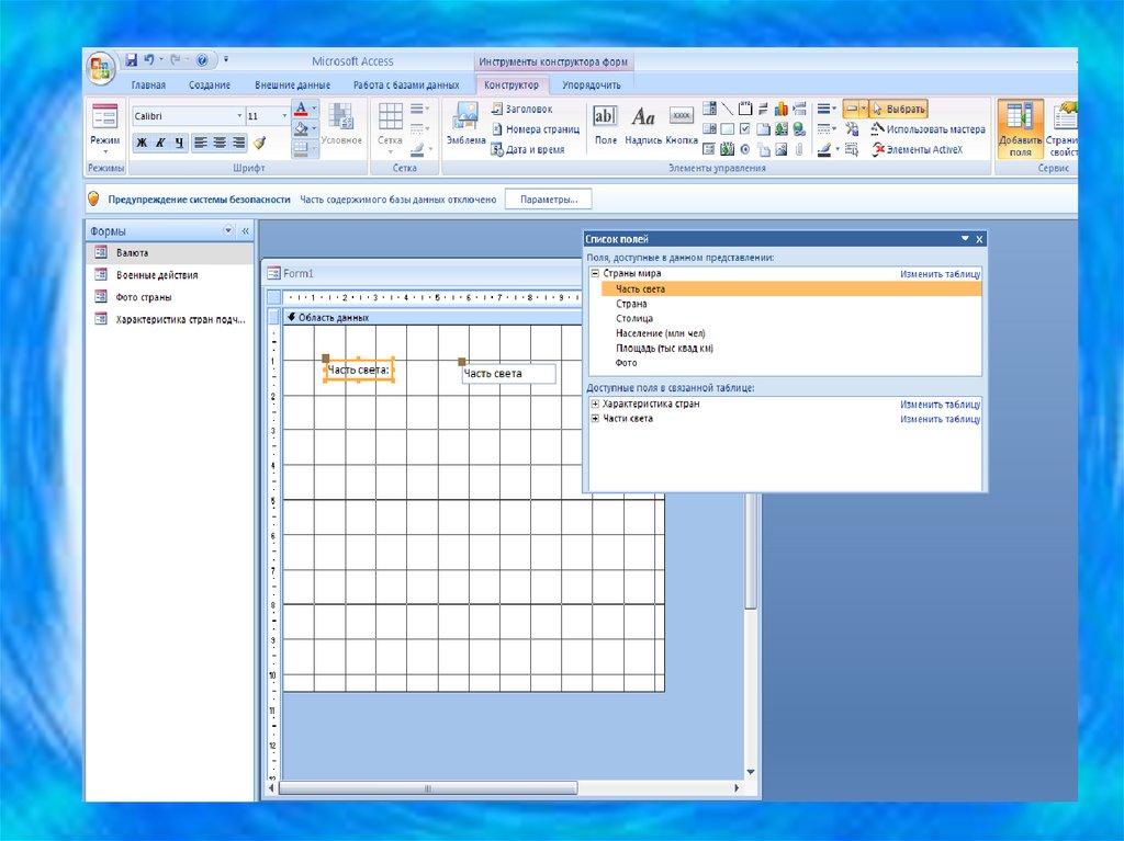 29. Создание форм с помощью Конструктора
