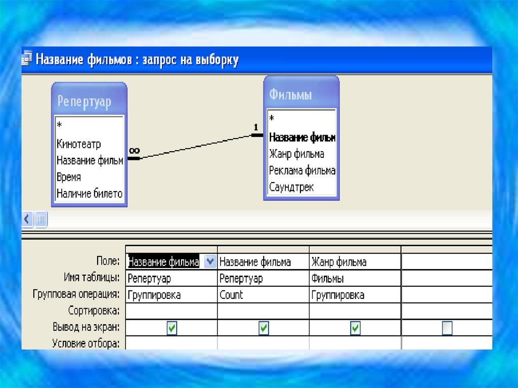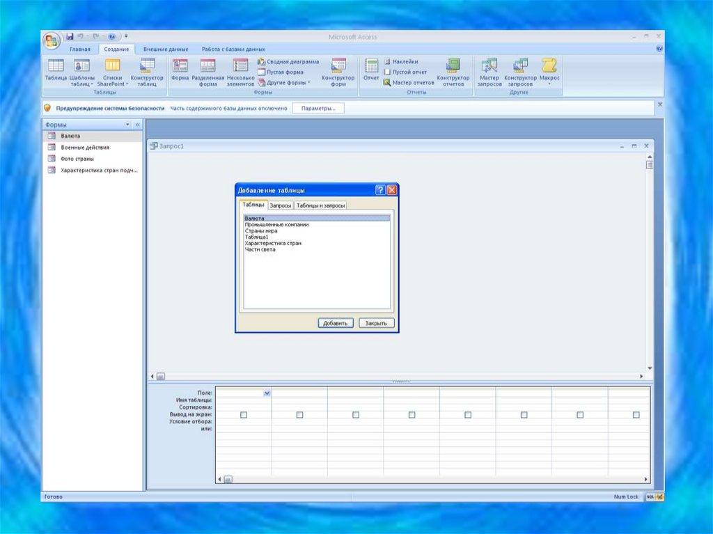 35. Создание запроса на выборку с помощью Конструктора