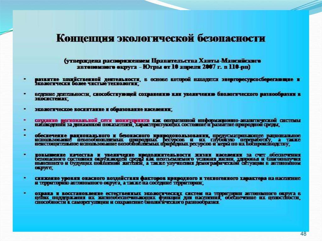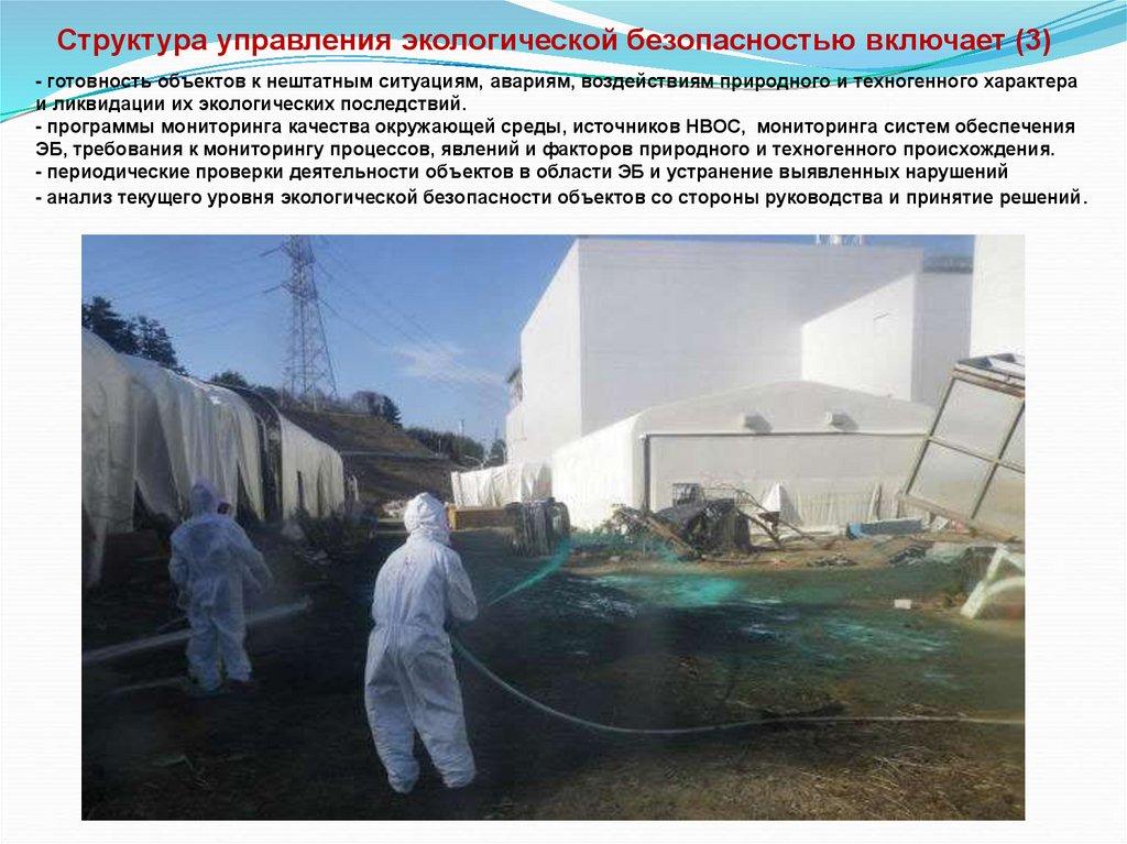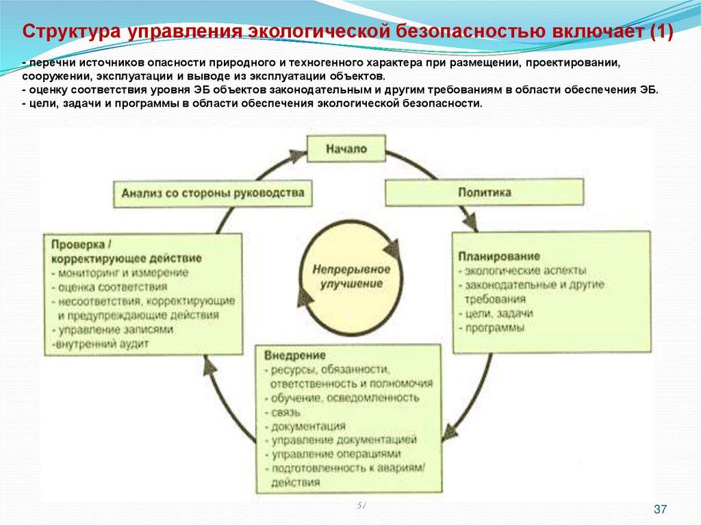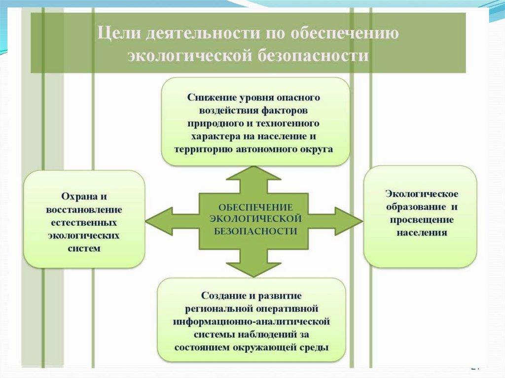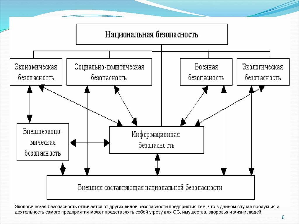 Экологическая безопасность отличается от других видов безопасности предприятия тем, что в данном случае продукция идеятельность самого предприятия может представлять собой угрозу для ОС, имущества, здоровья и жизни людей.