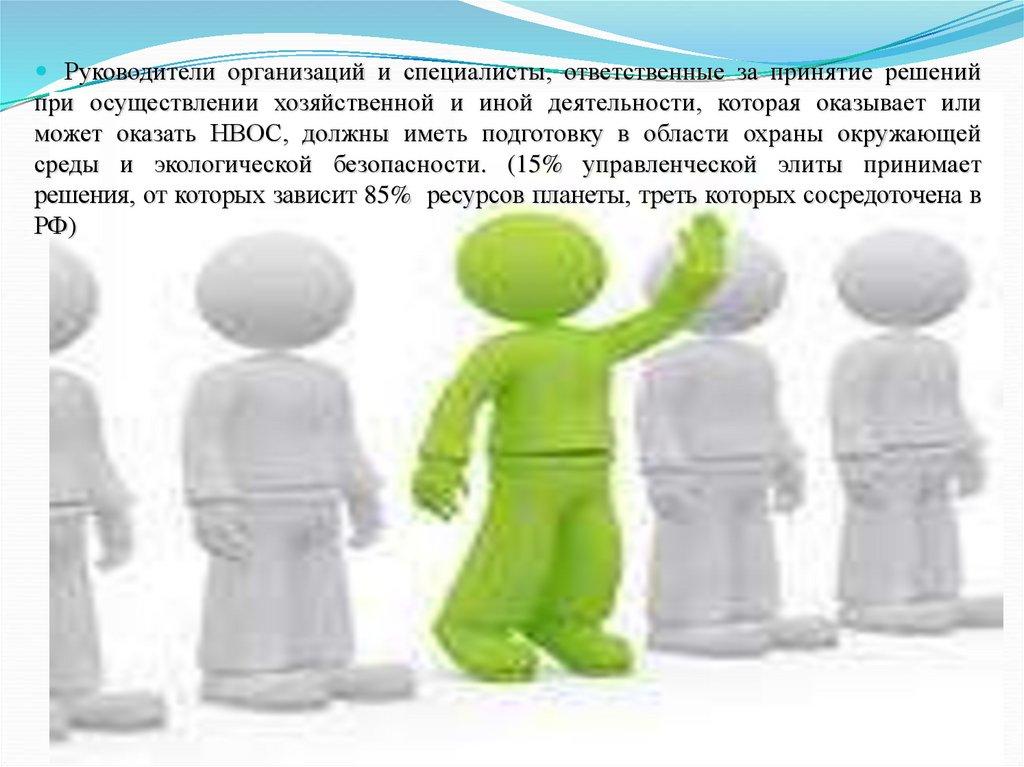 1. Подготовка и аттестация руководителей ЮЛ, ИП и специалистов, ответственных за принятие решенийпри осуществлении хозяйственной и иной деятельности, которая оказывает или может оказать НВОС в