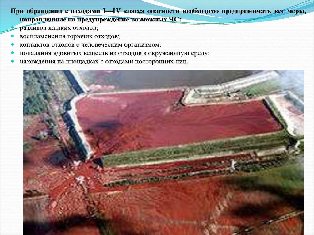 При обращении с отходами I—IV класса опасности необходимо предпринимать все меры,направленные на предупреждение возможных ЧС: