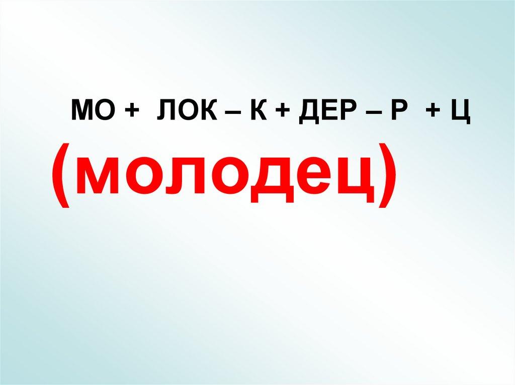 МО + ЛОК – К + ДЕР – Р + Ц(молодец)
