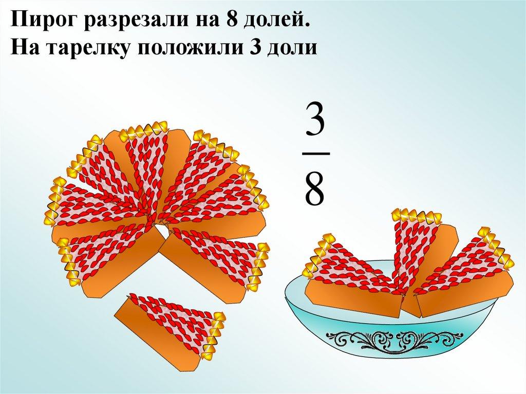 Пирог разрезали на 8 долей.На тарелку положили 3 доли