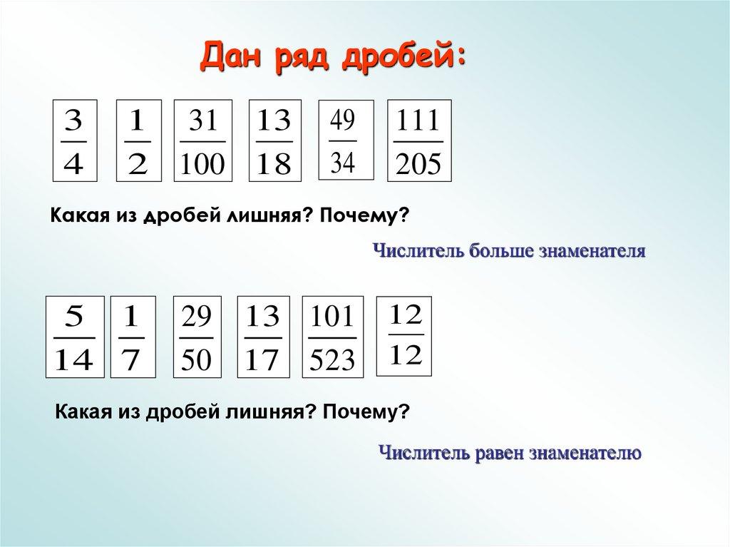 Какая из дробей лишняя? Почему?