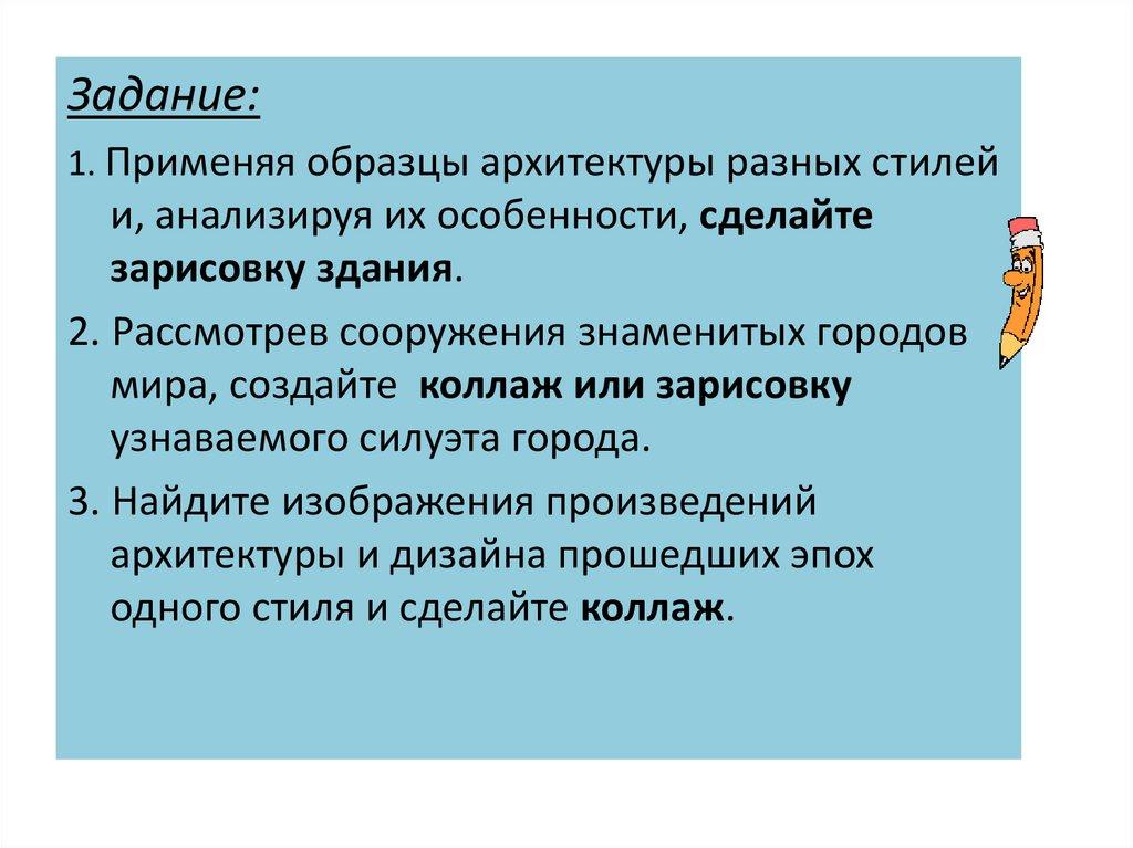 Задание:1. Применяя образцы архитектуры разных стилей и,