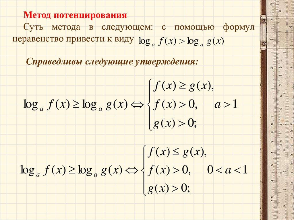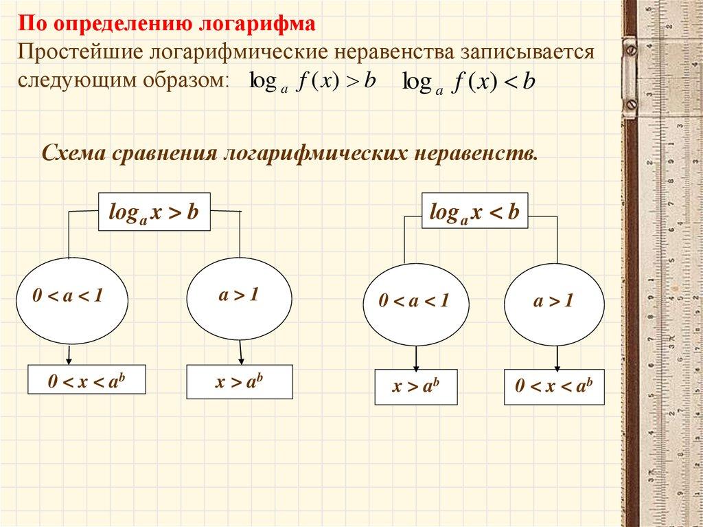 По определению логарифмаПростейшие логарифмические неравенства записывается